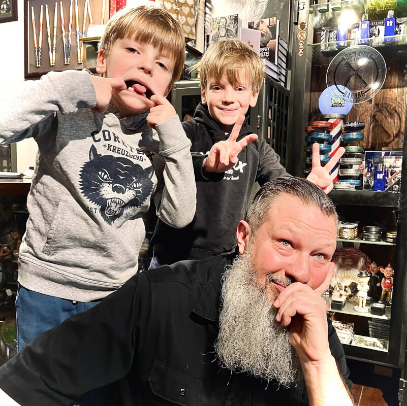Lubimy soboty z dzieciakami w zakładzie. Sobota to z natury taki rodzinny dzień u fryzjera. Wtedy tatusiowie mają czas, a mamity ciekawe steampunkowego miejsca wpadają razem z całą ferajną. Dzieje się wtedy i czasem trzeba mieć oczy i uszy szeroko otwarte, żeby się nic nie stało, ale takie jest właśnie życie.