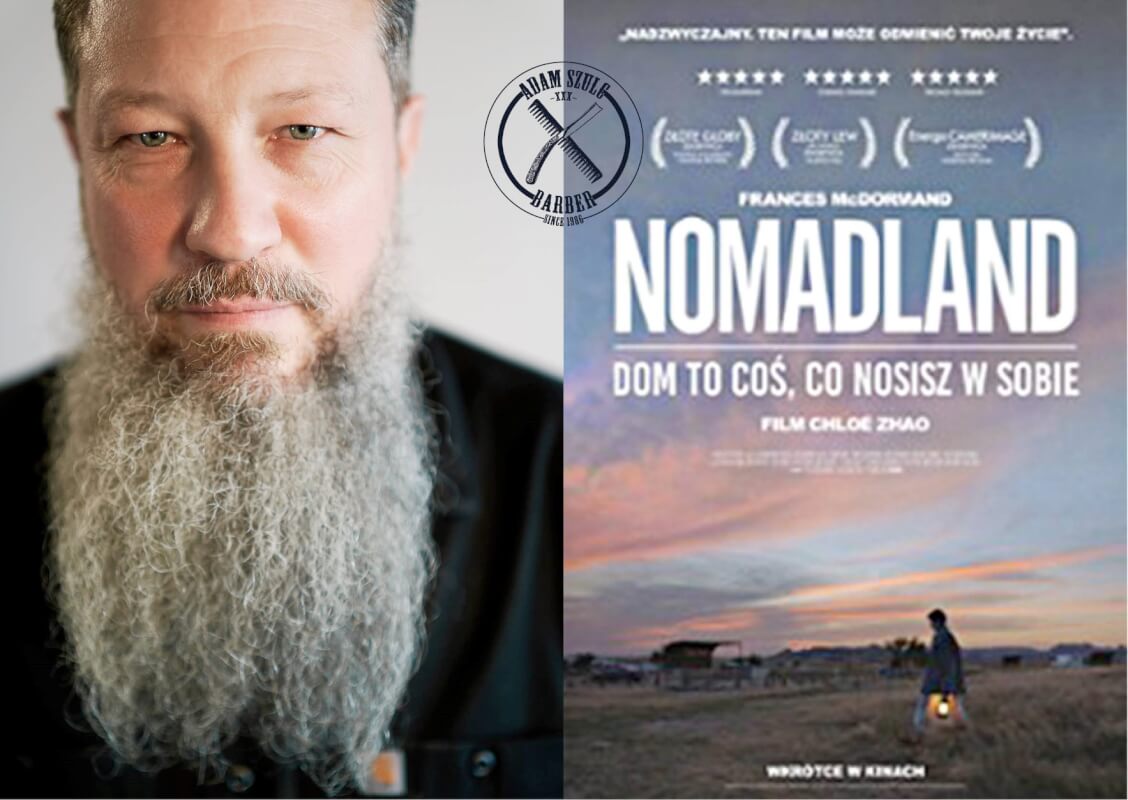 W „Nomadland” zobaczymy też elementy fryzjerskie – a jakże!- kilka razy słyszymy jak bohaterowie o tym mówią albo oglądamy jak wzajemnie lub sami strzygą się maszynkami lub nożyczkami. Wszystko na poziomie D.I.Y. czyli zrób to sam bez pomocy profesjonalistów z zewnątrz. Bo tam w każdej dziurze i w każdym sklepie typu mydło- powidło można kupić zestawy do strzyżenia siebie w domu za kilka dolarów. Nie mówię, że to dobrze dla mojej branży. Pisałem o tym w „Następnym Proszę!”, że był to jeden z kilku ważnych powodów załamania się fryzjerstwa męskiego w latach siedemdziesiątych.
