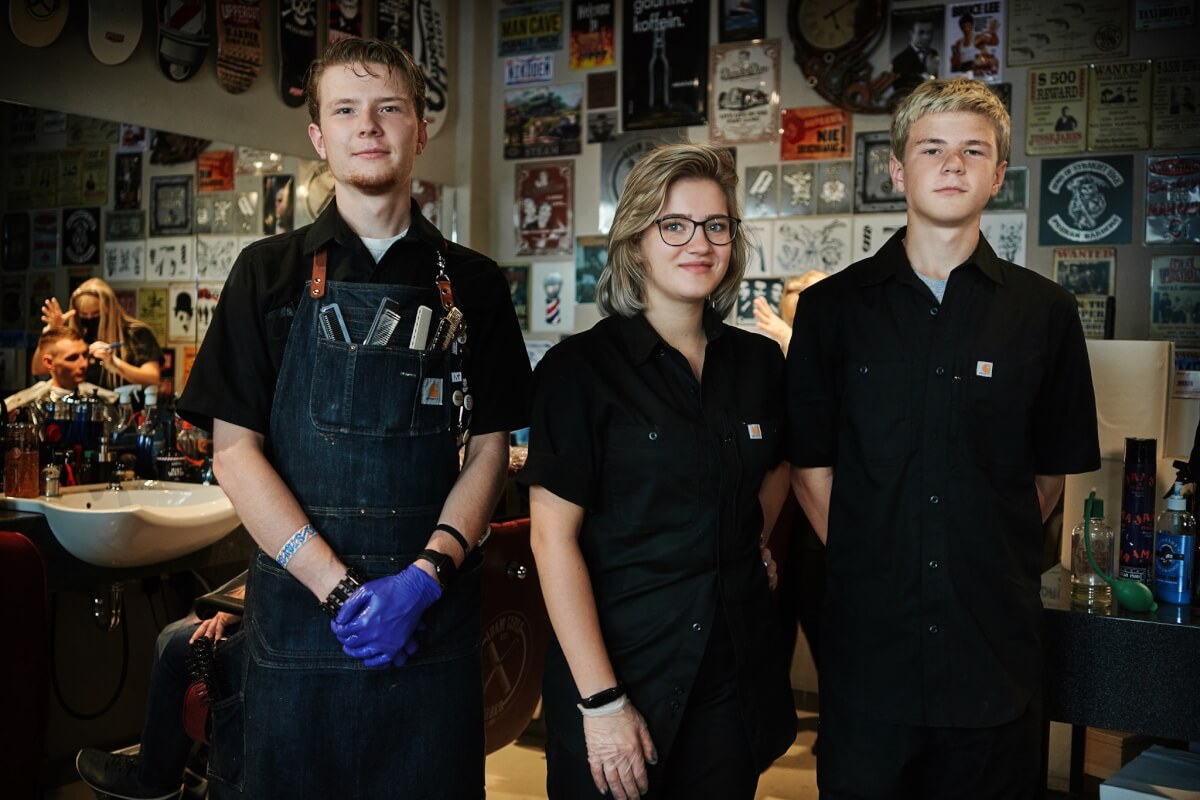 ADAM JUNIOR kontynuuje piękne tradycje Jamy nauki w szkole branżowej, a my szczycimy się tym, że każdy z nas przeszedł taką drogę. Adam Jr rozpoczął naukę w zawodzie fryzjer od 1 września 2021 roku i terminuje rzecz jasna u nas. Choć tak naprawdę jego przygoda z fryzjerstwem męskim rozpoczęła się dużo wcześniej kiedy jeszcze pacholęciem był. Wszystkie wyjazdy na targi, szkolenia, pokazy, spotkania autorskie czy edukacyjne zaliczał zawsze z wielką ochotą. To dało mu podbudowę, z której teraz będzie korzystał. Oprócz zawodowych zajawek młody ten osobnik trikuje na hulejce i słucha INNEJ muzyki! My zatem razem z nim będziemy pławić się w rytmach Michaela Jacksona. Poza tym przyda nam się jego uśmiechnięta facjata. Dawno nie mieliśmy w swojej ekipie tak młodej młodzieży jak on. I to nas cieszy.