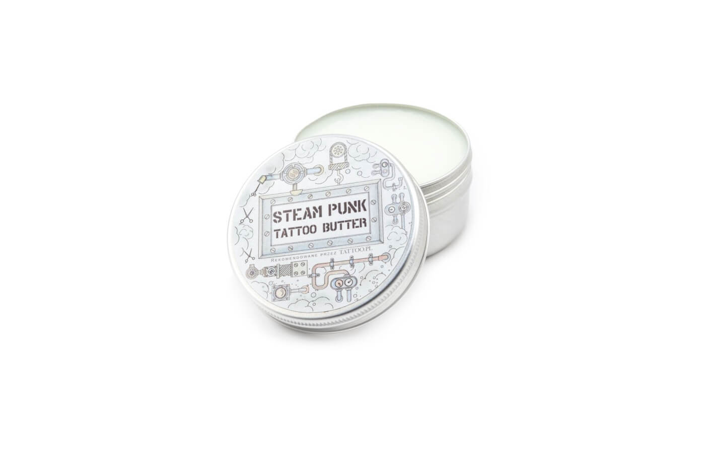 Steam Punk Tattoo Butter jest wyjątkowy, ponieważ dzięki naturalnym składnikom, a w szczególności masłu shea, olejom szlachetnym i woskowi pszczelemu w wyraźny sposób odżywia i poprawia wygląd tatuażu.