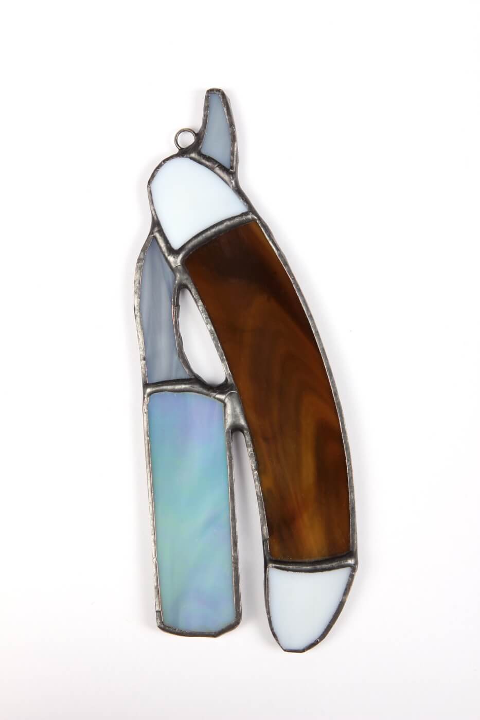 Ta brzytwa została wykonana przez Tomasza Knasiaka- poznańskiego witrażystę z dwudziestopięcioletnim stażem w zawodzie. Ten artysta- rzemieślnik zrobił dla nas tę choinkową zawieszkę ręcznie, sprawiając, że każda z nich jest unikatową ozdobą gwiazdkową.