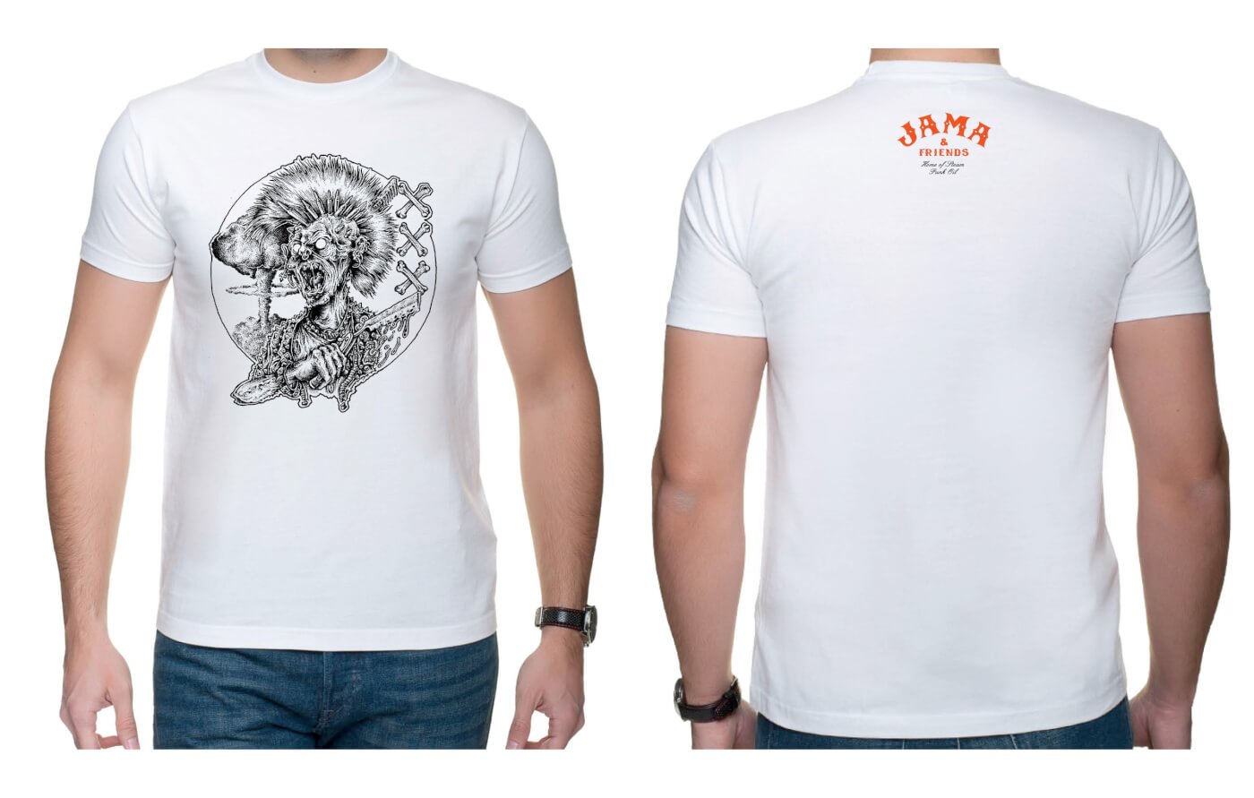 Rysunek wykonał na nasze zamówienie Stiv z belgijskiego zespołu Visions Of War. Przedstawia steampunkowego panczura po przejściach z irokezem i okrwawioną brzytwę w dłoni. W tle grzyb jądrowy. Rysunek czarny na białej koszulce.