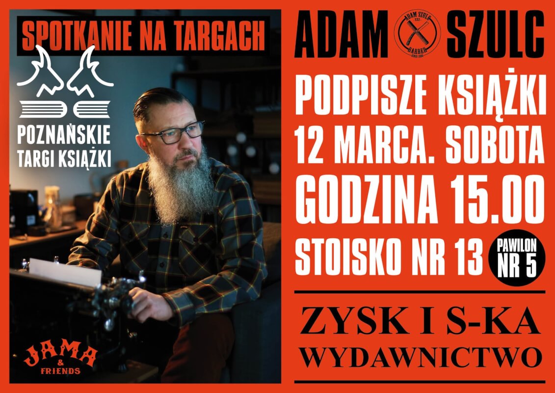 Zapraszamy na spotkanie z autorem bestsellerowych opowieści o fryzjerstwie męskim. Adam Szulc to fryzjer, gawędziarz, edukator i pisarz. Pojawi się wraz ze swoją ekipą na stoisku nr 13 Zysk i S-ka Wydawnictwo w Pawilonie nr 5 na terenie Międzynarodowe Targi Poznańskie.